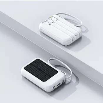Solar Power Bank 20000mAh with LED Lights & Built-in Cables
